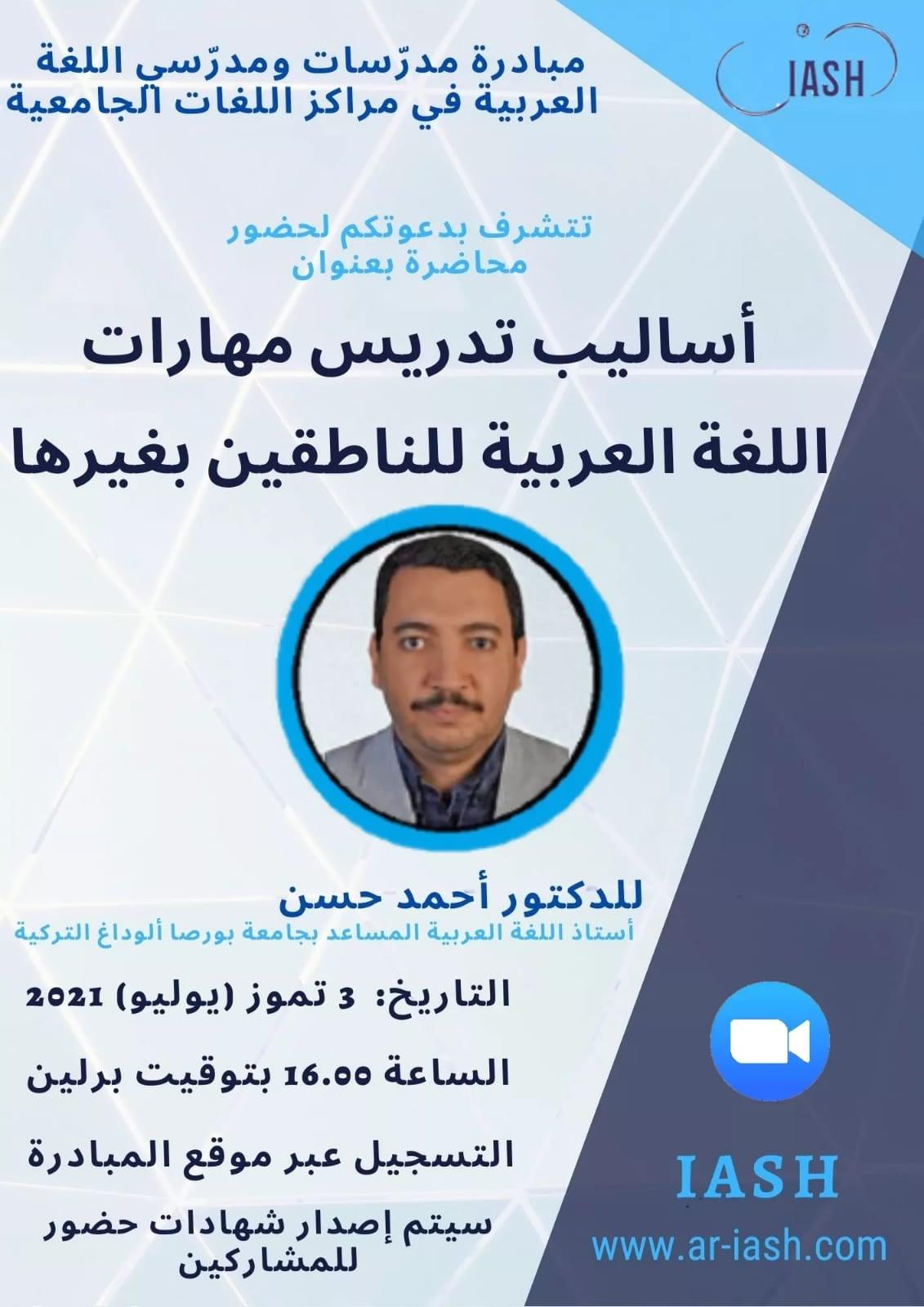 والمحاضرة تنظمها مبادرة مدرسات ومدرسي اللغة العربية في مراكز اللغات الجامعية في ألمانيا، وسيتم إصدار شهادات مجانية للمشاركين، والتسجيل مجاني عبر موقع المبادرة أو مباشرة من الرابط: