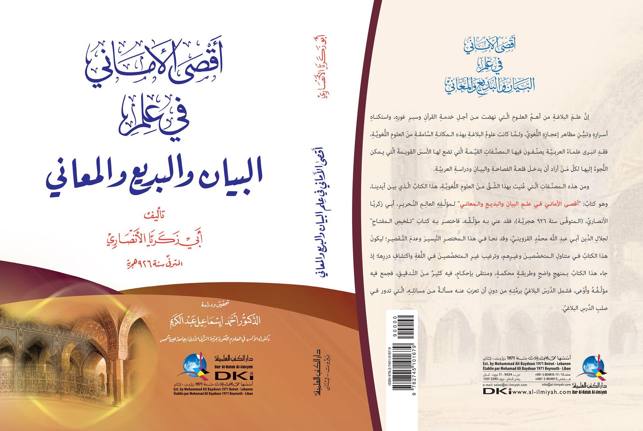 صدر حديثًا: أقصى الأماني في عام البيان والبديع والمعاني لأبي زكريا الأنصاري