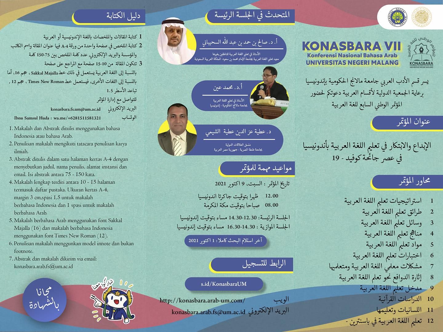 يسر قسم الأدب العربي جامعة مالانج الحكومية بأندونيسيا برعاية الجمعية الدولية لأقسام العربية بدعوتكم لمشاركة المؤتمر الوطني السابع للغة العربية