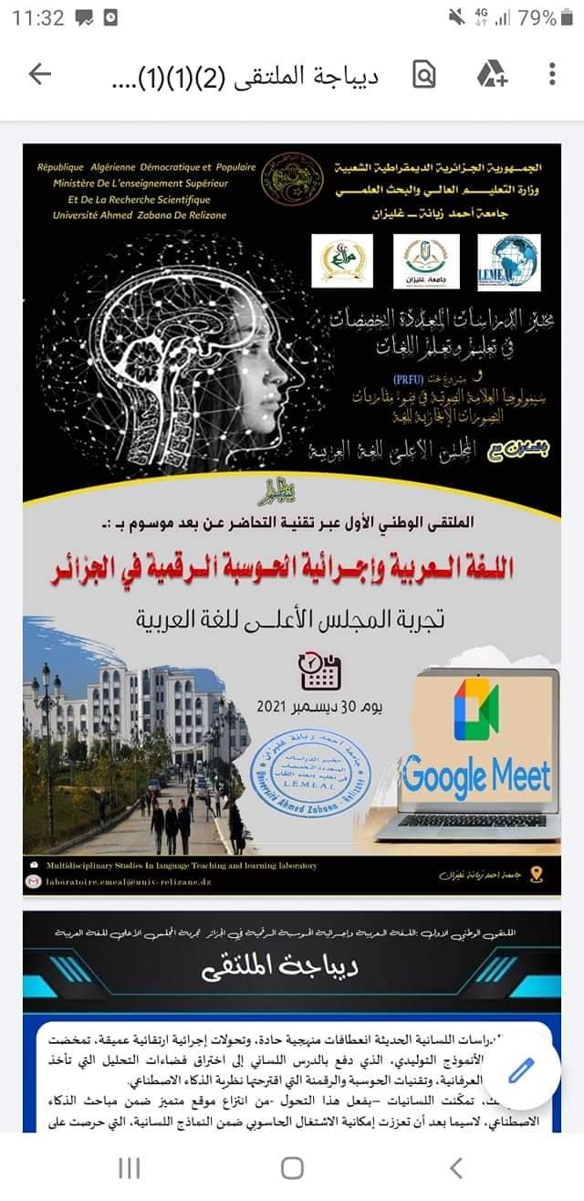 ملتقى دولي بعنوان: اللغة العربية وإجرائية الحوسبة الرقمية في الجزائر