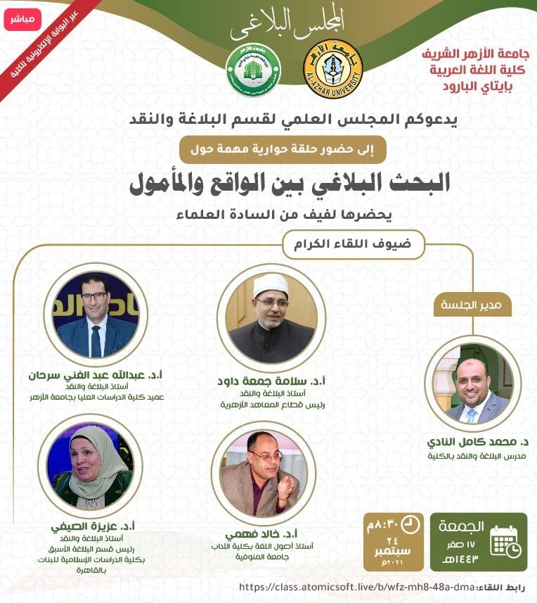 مجلس علمي بعنوان: البحث البلاغي بين الواقع والمأمول بجامعة الأزهر