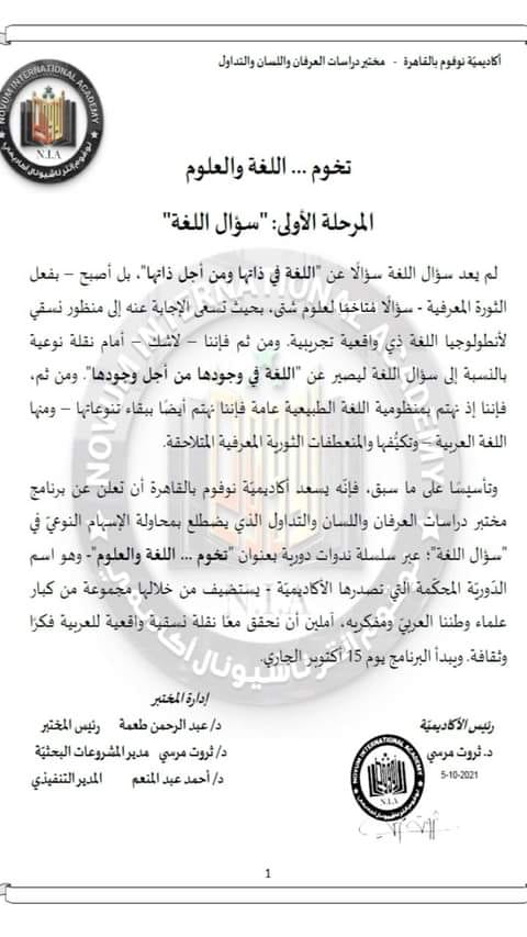 ندوة علمية بعنوان: "تخوم .. اللغة والعلوم: سؤال اللغة"