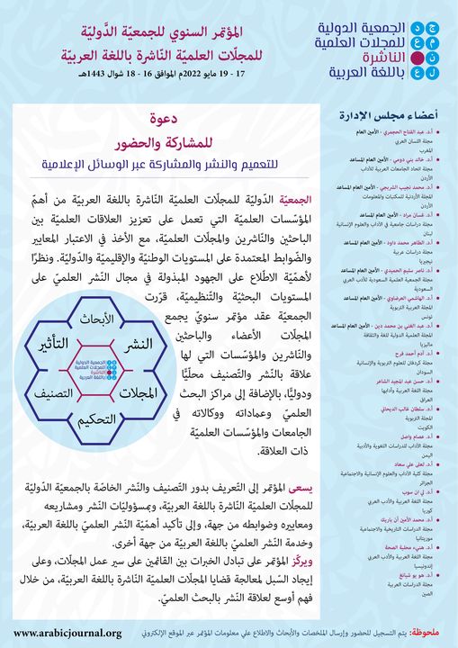 المجلس الدولي للغة العربية يدعو إلى المؤتمر السنوي للجمعية الدولية للمجلات العلمية