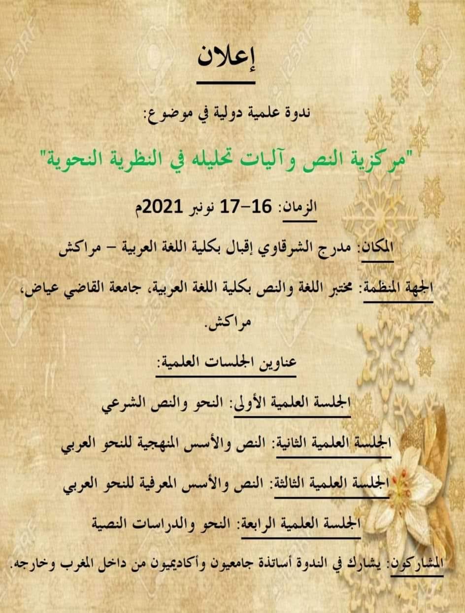 ندوة علمية دولية بعنوان: "مركزية النص وآليات تحليله في النظرية النحوية" بمراكش