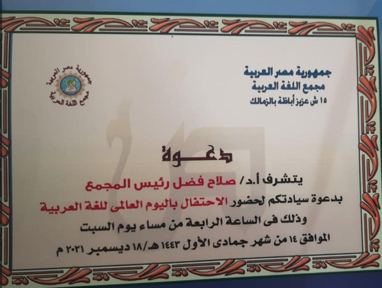 مجمع اللغة العربية بالقاهرة ينظم فعالية للاحتفال باليوم العالمي للغة العربية 18 ديسمبر 2021م