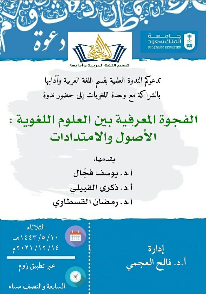 جامعة الملك سعود تنظم الندوة العلمية: الفجوة المعرفية بين العلوم اللغوية الأصول والام