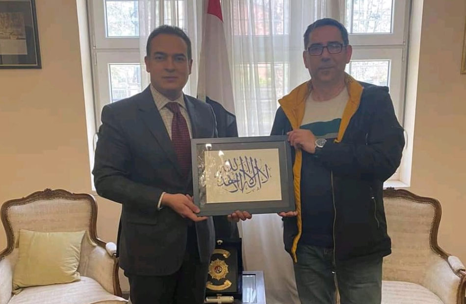 سفير مصر في بلغراد يستقبل خطاطًا صربيًّا يقدم أعمالًا فنية باللغة العربية