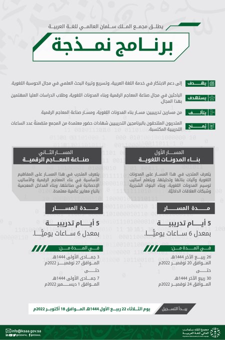 يسرنا في #مجمع_الملك_سلمان_العالمي_للغة_العربية إطلاق البرنامج التدريبي المكثف "نمذجة"؛ دعمًا للابتكار في مجال بناء المدوّنات اللغوية، وصناعة المعاجم الرقمية، وتمتينًا للصلة مع الباحثين والمهتمين بالحوسبة اللغوية.