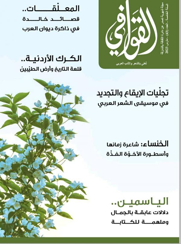 صدر عن بيت الشعر في دائرة الثقافة بالشارقة العدد الـ 43 من مجلة “القوافي”، التي تهتم بالشعر الفصيح حاضرا وتراثا، وتضيء على تجارب الشعراء بالنقد والدراسة، كما تحتفي بنشر جديدهم وإبداعاتهم الشعرية. وجاءت افتتاحية العدد تحت عنوان ” تجارب شعرية متوهجة بالتجديد والابتكار"، جاء فيها: " سيبقى الشعر العربي في عصوره الأولى يحتفظ بوهج بداياته وأثرها في الأجيال، حيث إن الذاكرة العربية تحفظ إبداعات شعراء العصر الجاهلي التي مثلت البداية الحقيقية للشعر، والمطّلع على تلك التجارب سيجدها قد تجاوزت زمنها بلغتها الصافية، وصورها المبتكرة، ومعالجتها الفنية لموضوعاتها؛ ففيها من الدهشة والتصوير والتجديد والابتكار ما يجعلها خالدةً على مر العصور، وقد تصدرت معلّقات العصر الجاهلي المشهد الشعري، وبقيت إلى يومنا هذا تمثل قيمة إبداعية عالية، ومرجعاً شعريًّا."