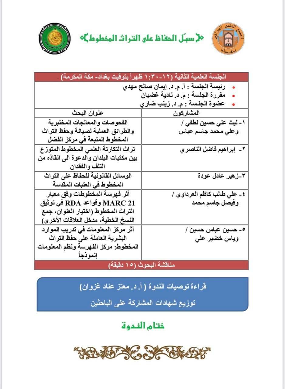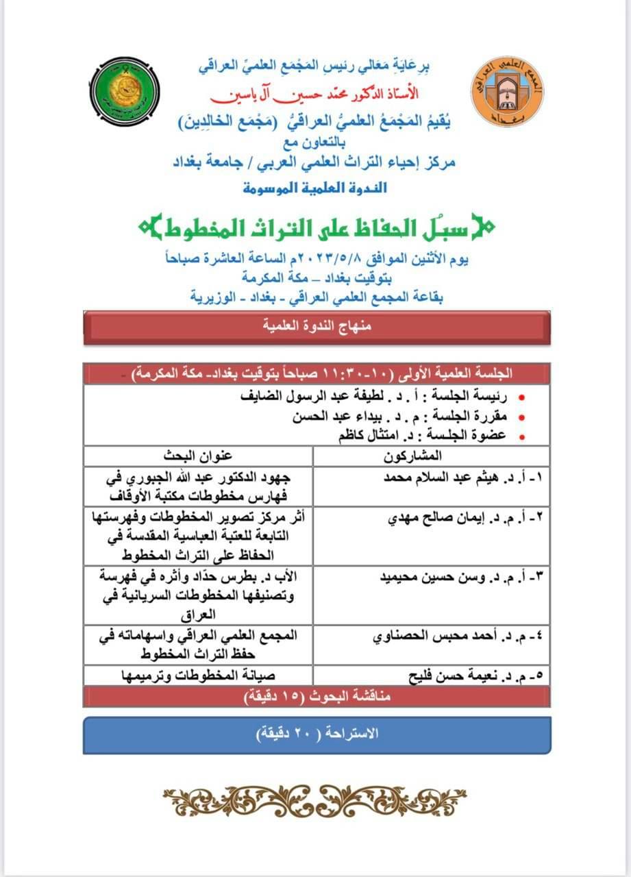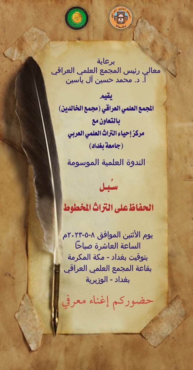 المجمع العلمي العراقي يقيم اليوم الندوة العلمية (سبل الحفاظ على التراث المخطوط)