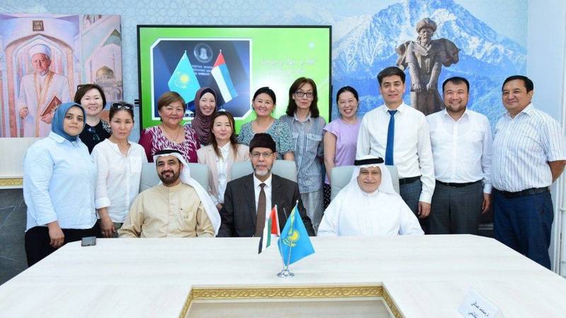 توجه وفد ثقافي أكاديمي من إمارة الشارقة إلى "جامعة الفارابي الوطنية" في كازاخستان، لبحث سبل التعاون الأكاديمي والثقافي المشترك بين "مجمع اللغة العربية في الشارقة" و"قسم الدراسات الشّرقيّة" بالجامعة، وضم الوفد الدكتور امحمد صافي المستغانمي، الأمين العام لمجمع اللغة العربية بالشارقة، والدكتور محمد كامل المعيني، رئيس مجلس إدارة المعهد الدولي للدبلوماسية الثقافية، واستقبله الدكتور جانسييت توينيبايف، رئيس الجامعة الفارابي الوطنية، وعدد من أعضاء هيئة التدريس والطلاب.