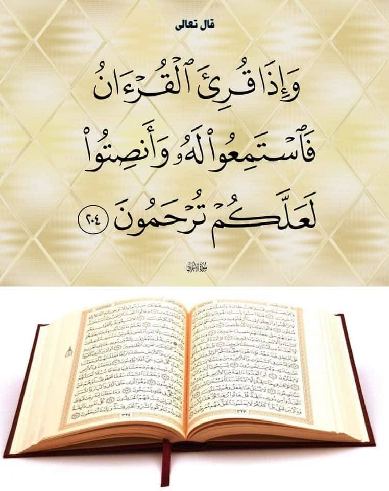 ﴿وَإِذا قُرِئَ القُرآنُ فَاستَمِعوا لَهُ وَأَنصِتوا لَعَلَّكُم تُرحَمونَ﴾ [الأعراف: ٢٠٤]