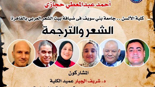 ينظم بيت الشعر العربي بيت الست وسيلة التابع لقطاع صندوق التنمية الثقافية برئاسة الدكتور وليد قانوش، ندوة تحت عنوان “الشعر والترجمة” بصالون الشاعر أحمد عبد المعطي حجازي، وذلك في تمام الساعة السادسة مساء الأحد الموافق 3 ديسمبر المقبل.