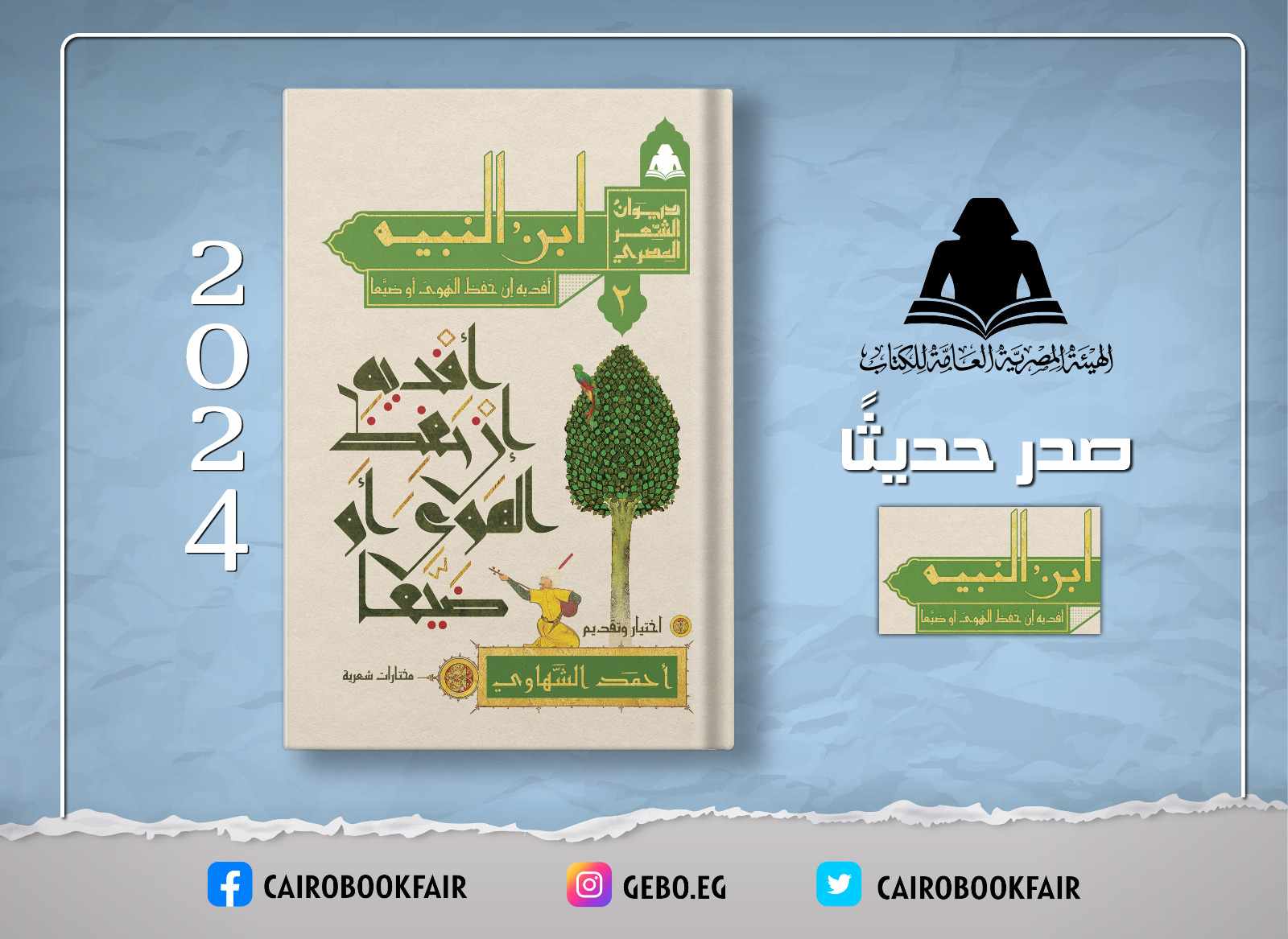 أصدرت الهيئة المصرية العامة للكتاب، برئاسة الدكتور أحمد بهي الدين، 4 عناوين من مشروع «ديوان الشعر المصري» الذي أطلقته الهيئة مؤخرًا، وجاء الكتاب الأول بعنوان «ابن سناء الملك.. يا شقيق الروح من جسدي»، والثاني «ابن النبيه.. أفديه إن حفظ الهوى أو ضيعا»، والثالث «ابن نباته المصري.. قامت قيامة قلبي» والرابع «البهاء زهير.. يا من لعبت به شمول» والإصدارات من اختيار وتقديم الشاعر أحمد الشهاوي.