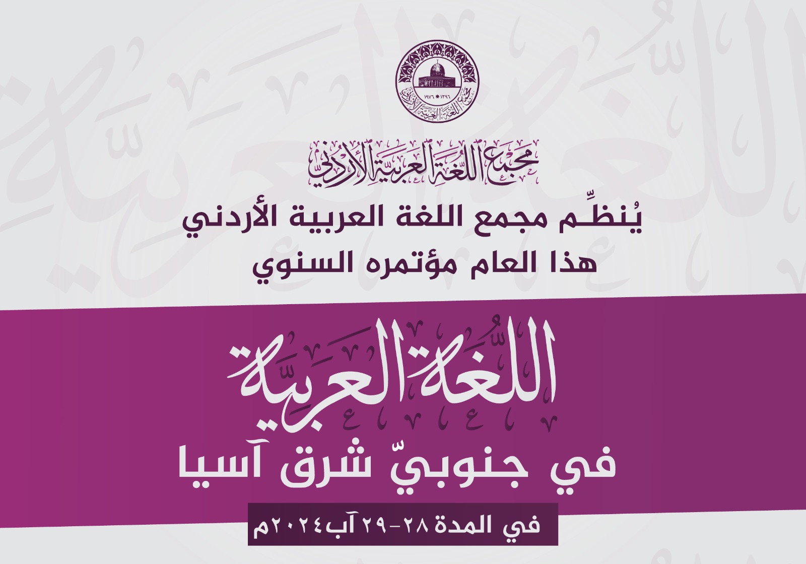 يعقد مجمع اللغة العربية الأردني مؤتمره السنوي لهذا العام 2024م، بعنوان "اللغة العربية في جنوبيّ شرق آسيا"، في المدة 28-29 من شهر آب المقبل.