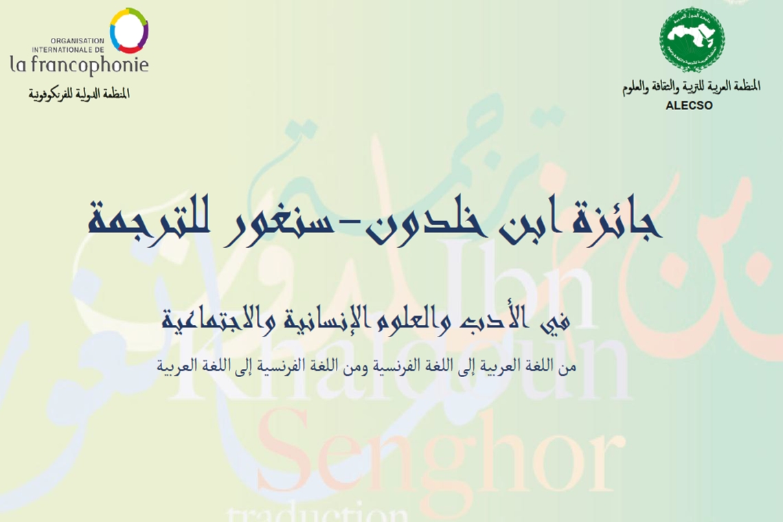 أعلنت منظمة (الألكسو) والمنظمة الدولية للفرنكوفونية، عن فتح باب الترشح للدورة الــ 17 من "جائزة ابن خلدون- سنغور للترجمة".