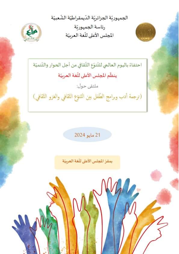 ينظم المجلس الأعلى للغة العربية، يوم 21 مايو 2024، ملتقى حول “ترجمة أدب وبرامج الطفل بين التنوع الثقافي والغزو الثقافي”، احتفاء باليوم العالمي للتنوع الثقافي من أجل الحوار والتنمية، بمقر المجلس الأعلى للغة العربية.يحضره ثلة من الأساتذة والباحثين من الجامعة الجزائرية ومن المهتمين بعوالم الطفل.