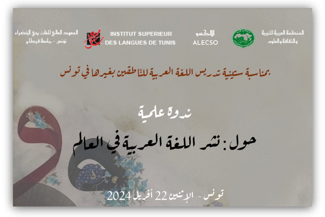 بتوجيه من معالي المدير العام للمنظمة أ.د محمد ولد أعمر، وتلبية لدعوة المعهد العالي للغات بتونس شاركت المنظمة يوم الاثنين 22 أبريل 2024 في النّدوة العلمية التي عقدها المعهد احتفاء بمرور ستين سنة على تجربة تونس في نشر اللغة العربية في العالم وتعليمها للناطقين بسواها.