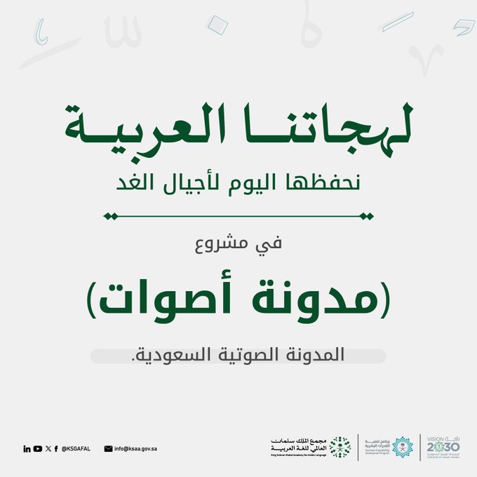 في إطار جهود مجمع الملك سلمان العالمي للغة العربية لتعزيز البحث والدراسات اللغوية، أطلق المجمع مشروع "مدونة أصوات السعودية"، والذي يخطط لاكتمال المرحلة الأولى منه بحلول نهاية هذا العام 2024.