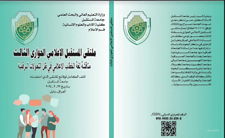 كتاب "وقائع ملتقى المستقبل الاعلامي الحواري الثالث" الصادر عن قسم الاعلام بكلية الاداب في جامعة المستقبل ببابل يضم ما يقرب من 22 بحثا أو ورقة بحثية عقد في رحاب جامعة المستقبل بتاريخ 27 شباط/فبراير 2024 وناقش واقع الخطاب الاعلامي العراقي في وسائل الإعلام العراقية المعطيات والآفاق المستقبلية وتوج الملتقى جهده بأن أصدره في كتابه هذا .
