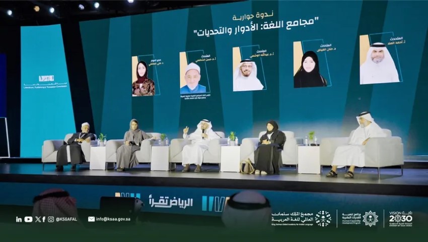 استضاف معرض الرياض الدولي للكتاب 2024، ندوة حوارية بعنوان "مجامع اللغة.. الأدوار والتحديات"، شارك فيها رئيس اتحاد المجامع اللغوية العلمية العربية حسن الشافعي، ورئيس مجمع الملك سلمان العالمي للغة العربية عبدالله الوشمي، والمستشارة الإعلامية لجائزة الشيخ حمد للترجمة والتفاهم الدولي في دولة قطر حنان الفياض، وخبير اللغة العربية أحمد الملا.