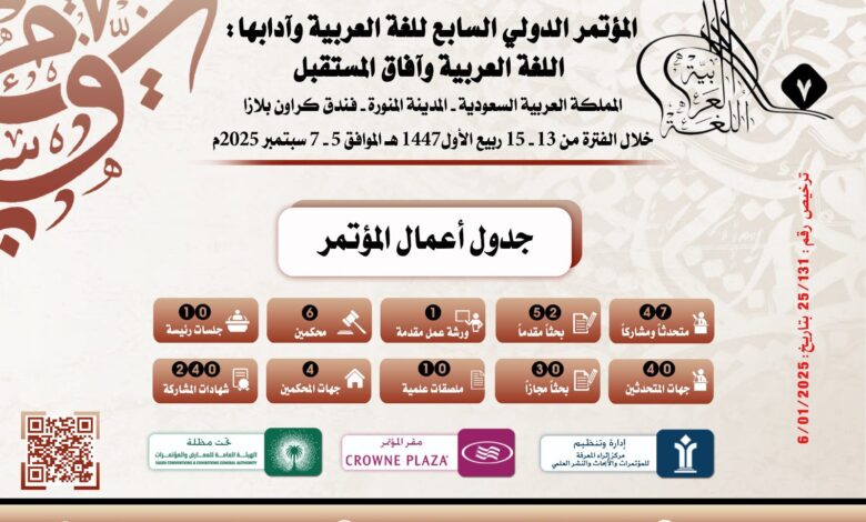 انطلاق أعمال المؤتمر الدولي السابع للغة العربية وآدابها في المدينة المنورة السبت المقبل