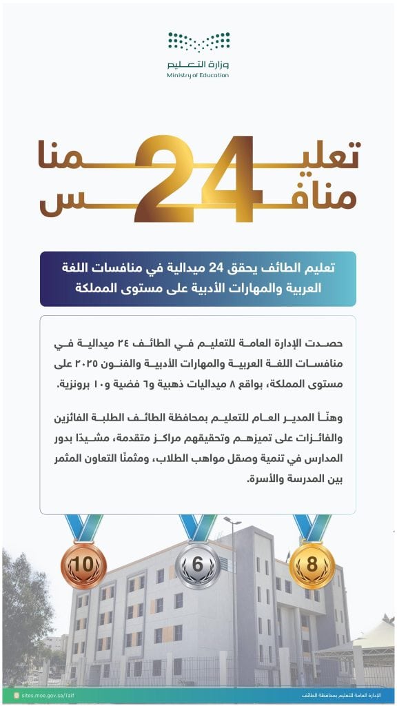 أيضًا أفاد بأن هذا التفوّق جاء ثمرةً لتكامل الجهود بين المعلمين والمعلمات، وقادة المدارس. علاوة على أولياء الأمور، وما حظي به الطلبة من دعم ومتابعة، داعيًا الجميع إلى مواصلة العمل والبذل لتحقيق المزيد من النجاحات في المحافل التعليمية.