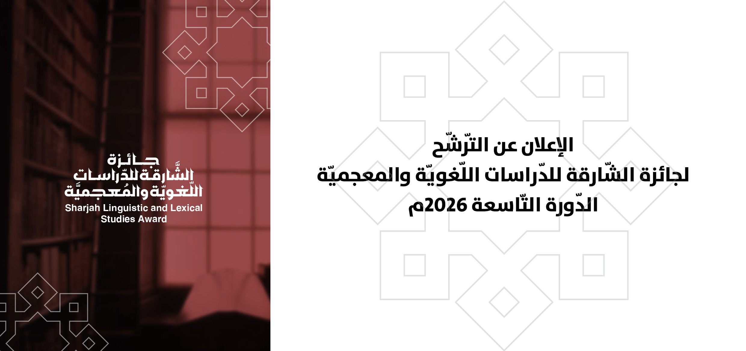 أعلنَ مجمعُ اللُّغة العربيّة بالشّارقة فتحَ باب التّرشُّح لجائزة الشّارقة للدّراسات اللُّغويّة والمعجميّة في دَورتها التّاسعة لعام 2026، ضمْن محورَي "الدّراسات اللُّغويّة" و "الدّراسات المعجميّة"، استمرارًا لنهْج الجائزة في دعْم البحْث العِلميّ المتخصِّص في علوم العربيّة، وتحفيزِ الدّراسات التي تُسهم في تطويرها نظريًّا وتطبيقيًّا، وتغْني المكتبة اللُّغويّة والمعجميَّة بإصدارات رصينة ذات قيمة عِلميّة مُضافة.