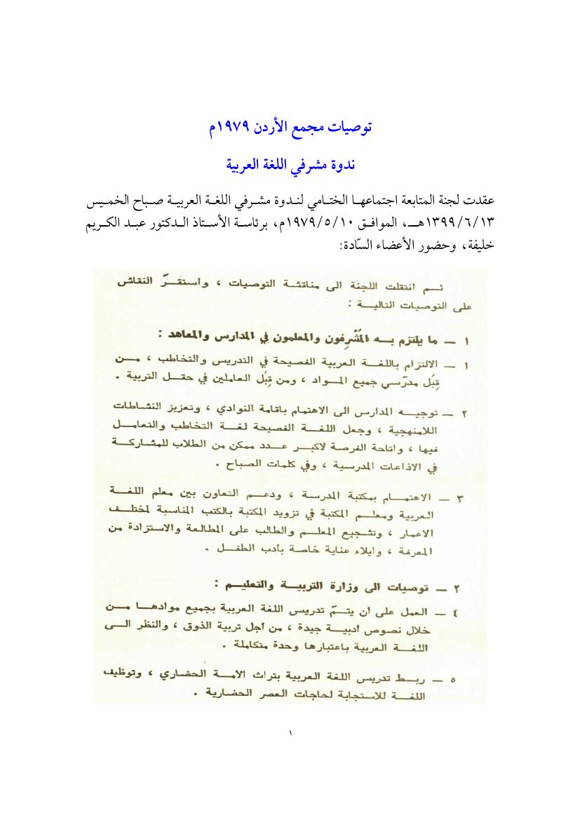 توصيات مجمع الأردن 1979م عن ندوة مشرفي اللغة العربية