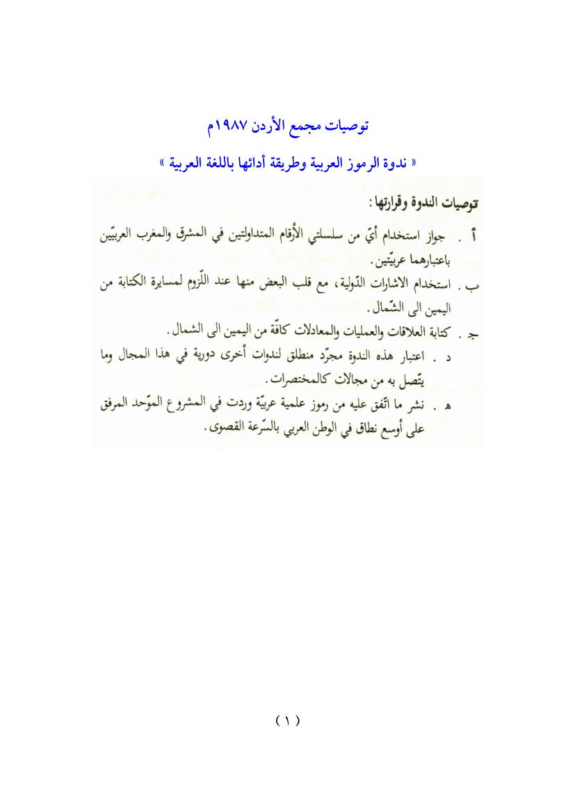 توصيات مجمع الأردن 1987م عن ندوة الرموز العربية وطريقة أدائها
