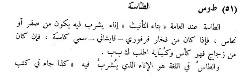 طاسة: كلمة فارسية الاصل وهي وعاء من النحاس يستخدم للشرب