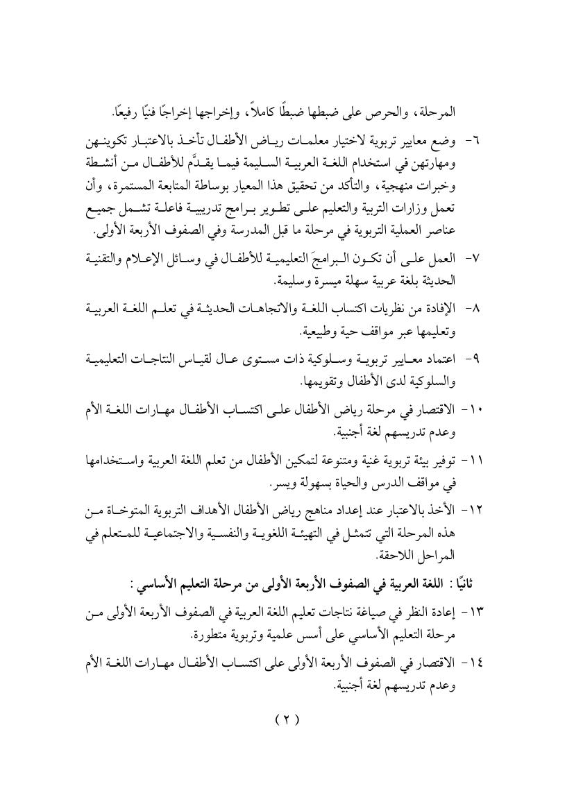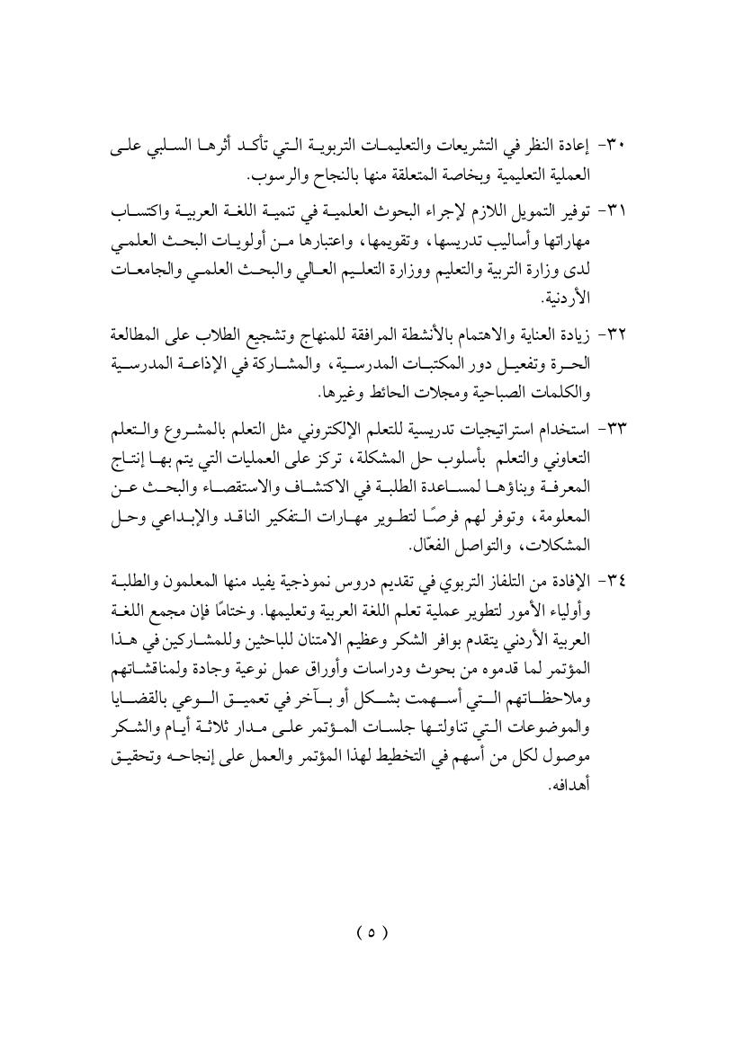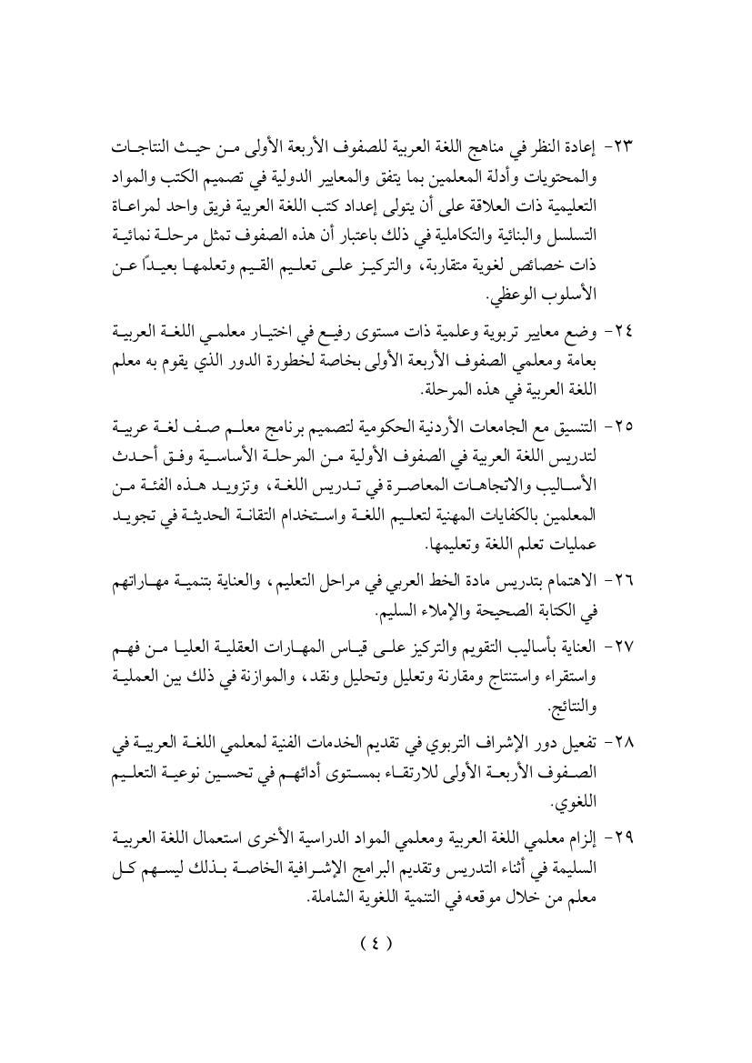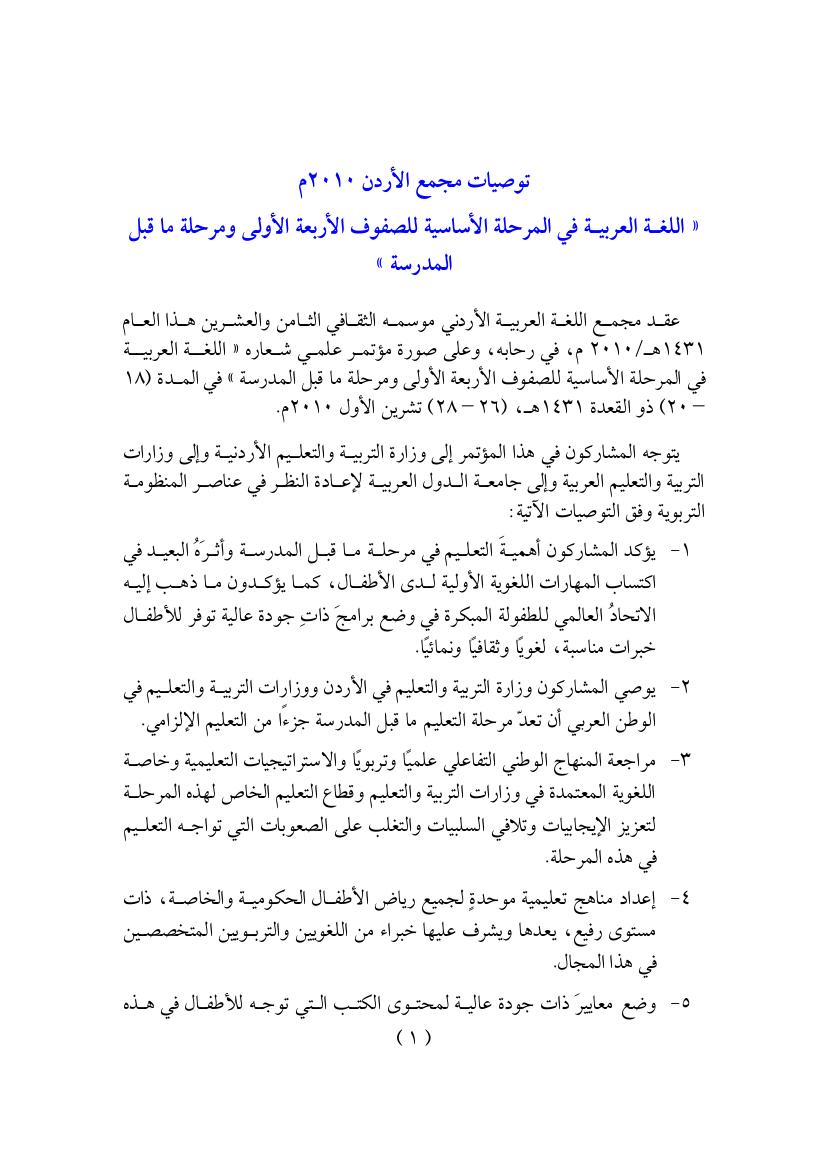 توصيات مجمع الأردن 2010م عن ندوة اللغة العربية في الصفوف الأربعة الأولية