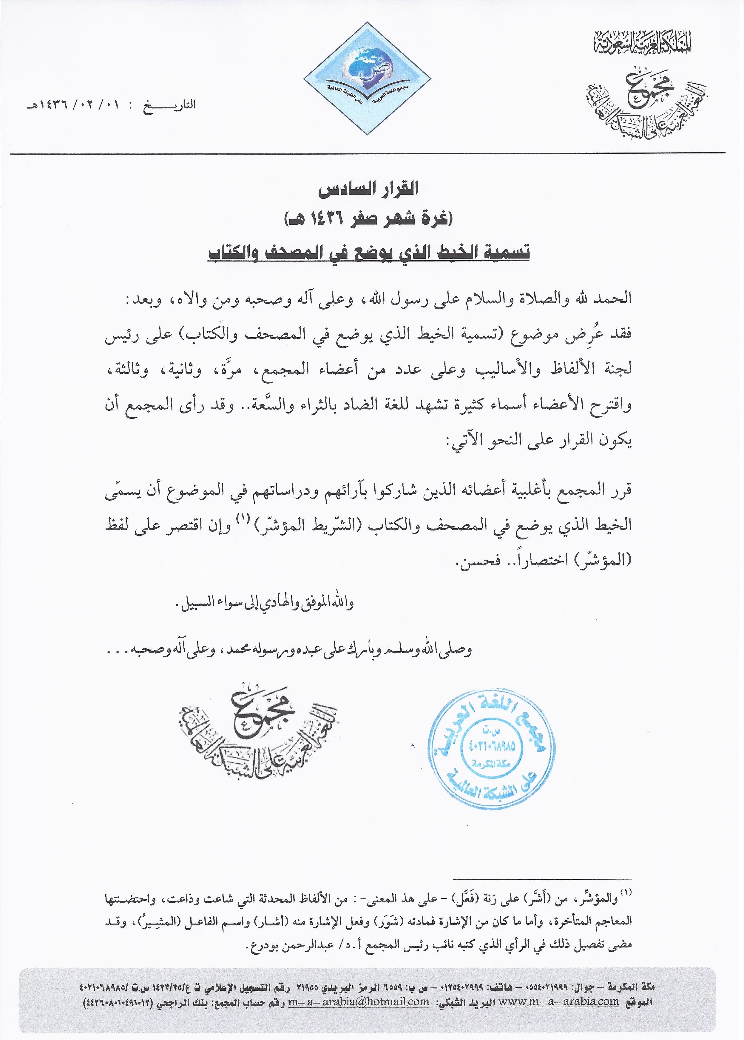 القرار السادس: تسمية الخيط الذي يوضع في المصحف والكتاب