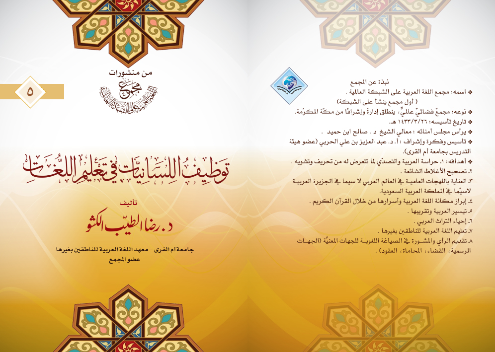 قريباً بإذن الله يصدر عن المجمع كتاب " توظيف اللسانيات في تعليم اللغات" للدكتور رضا الطيب الكشو، عضو المجمع، وعضو هيئة التدريس بمعهد تعليم اللغة العربية للناطقين بغيرها بجامعة أم القرى.